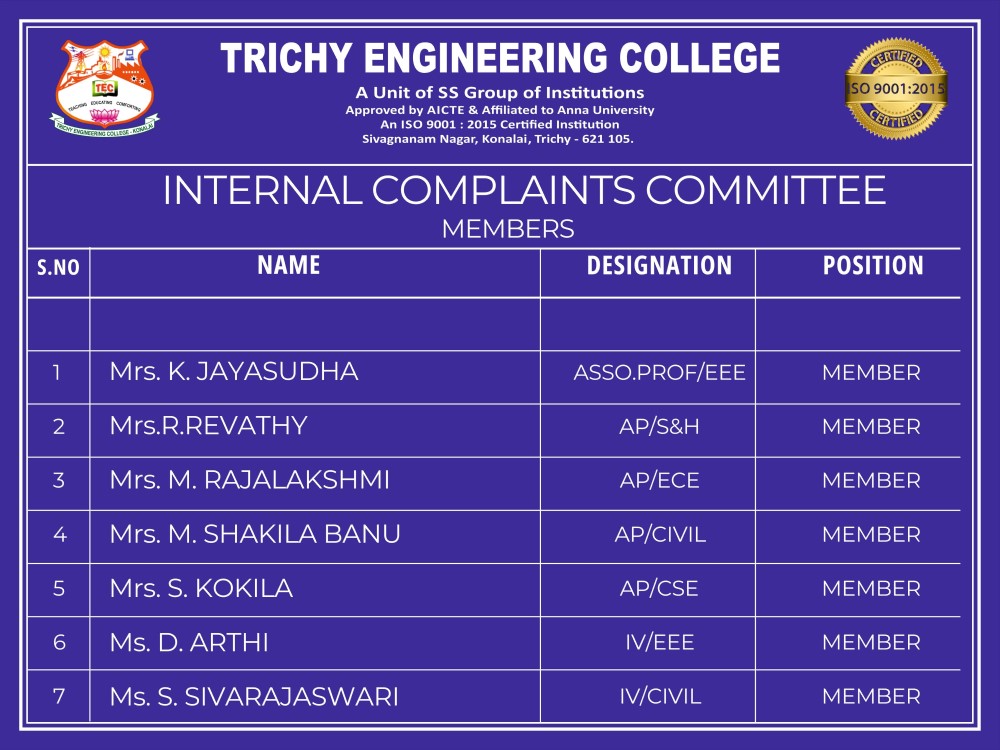 - In pursuance to the UGC/ Supreme Court guidelines, the TEC, Trichy has constituted